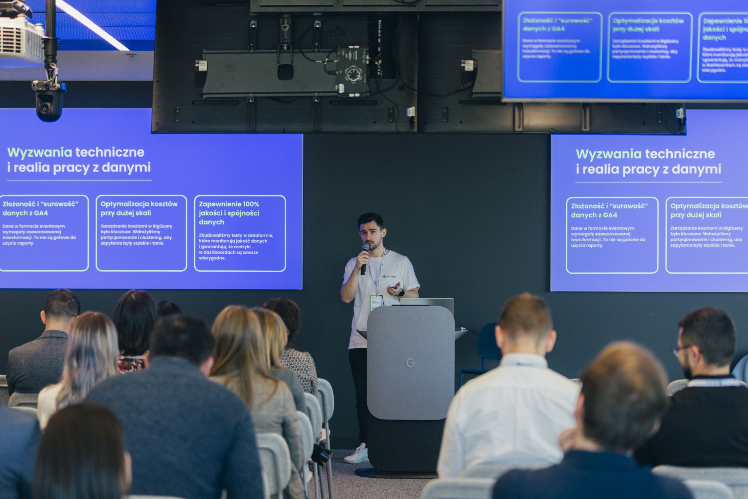 Na scenie pojawiają się eksperci Alterdata, specjaliści z firm partnerskich oraz przedstawiciele klientów, którzy dzielą się swoimi doświadczeniami z wdrażania rozwiązań opartych o dane.
